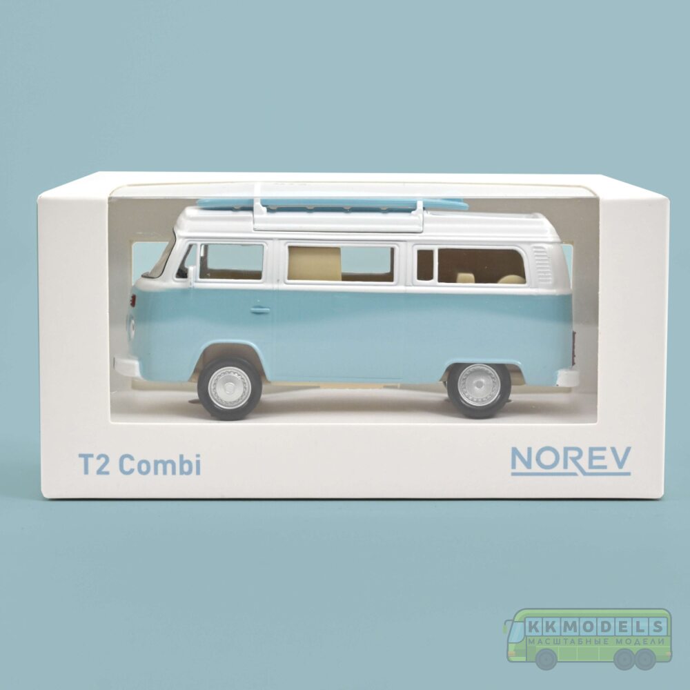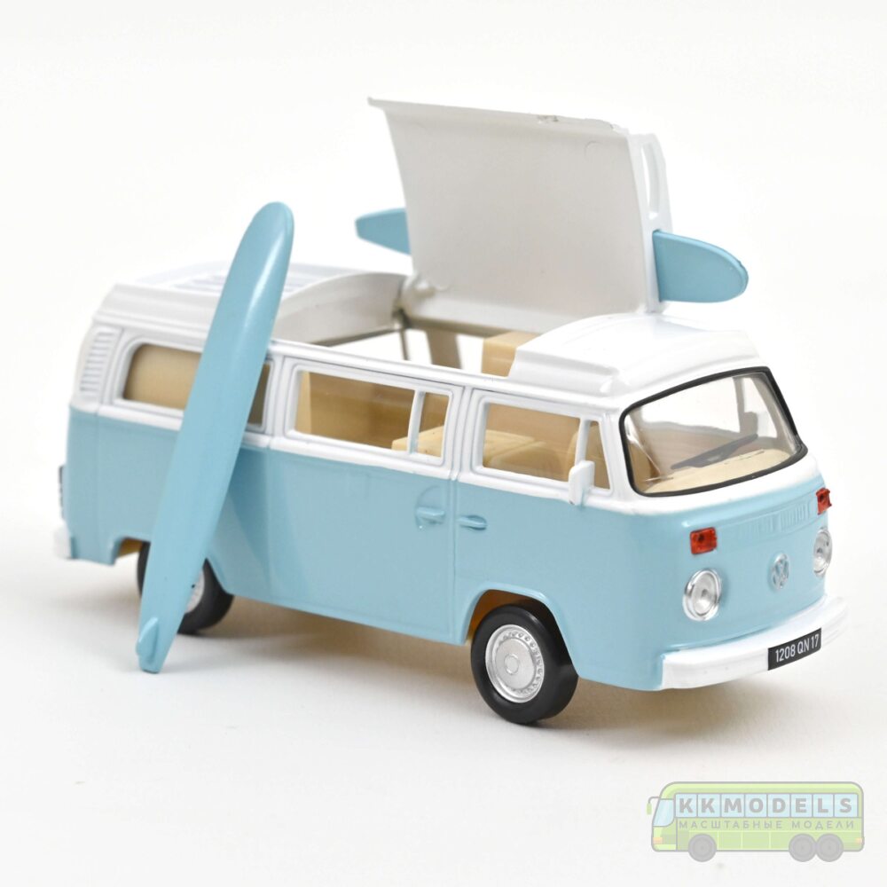 Масштабная модель VW T2 Combi Camper Van с досками для серфинга 1973 Pastel Blue