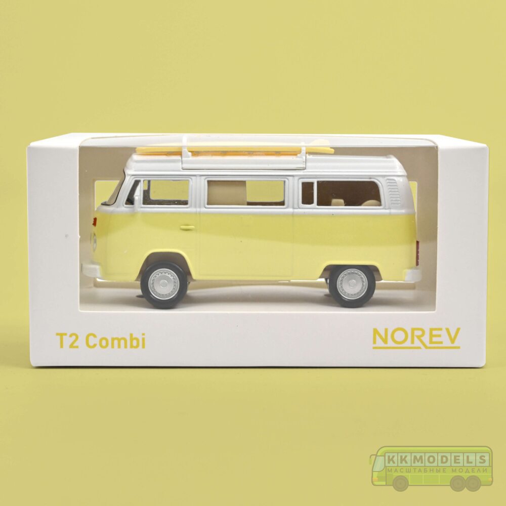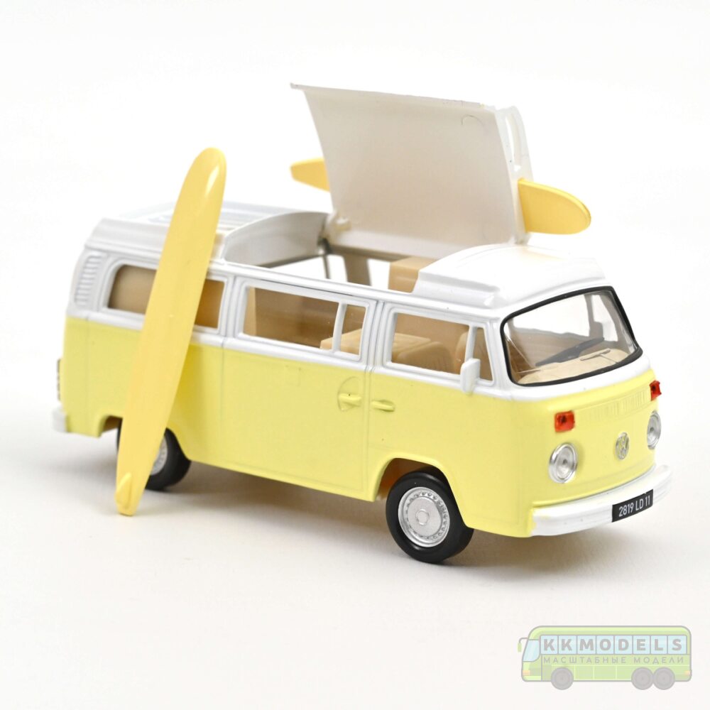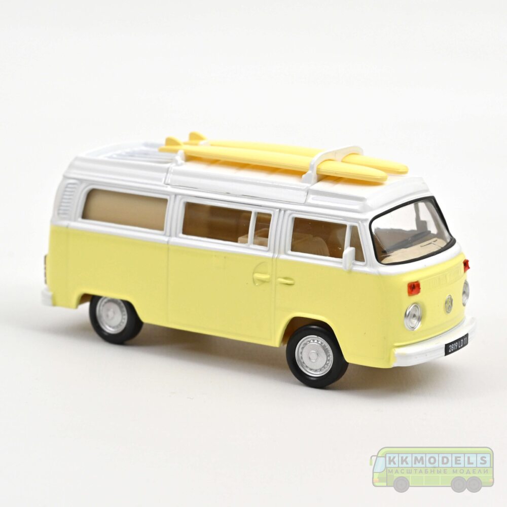 Масштабная модель VW T2 Combi Camper Van с досками для серфинга 1973 Pastel Yellow