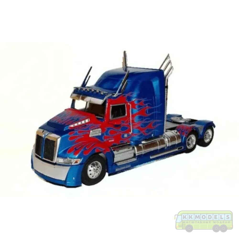 1:43 Масштабная модель WESTERN STAR 5700 EX седельный тягач (2016), синий металлик с красным декором в виде пламени
