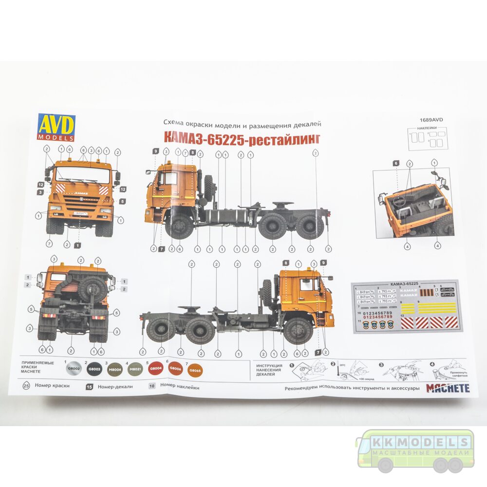 Технические характеристики 1:43 Сборная модель КАМАЗ-65225 (рестайлинг) седельный тягач