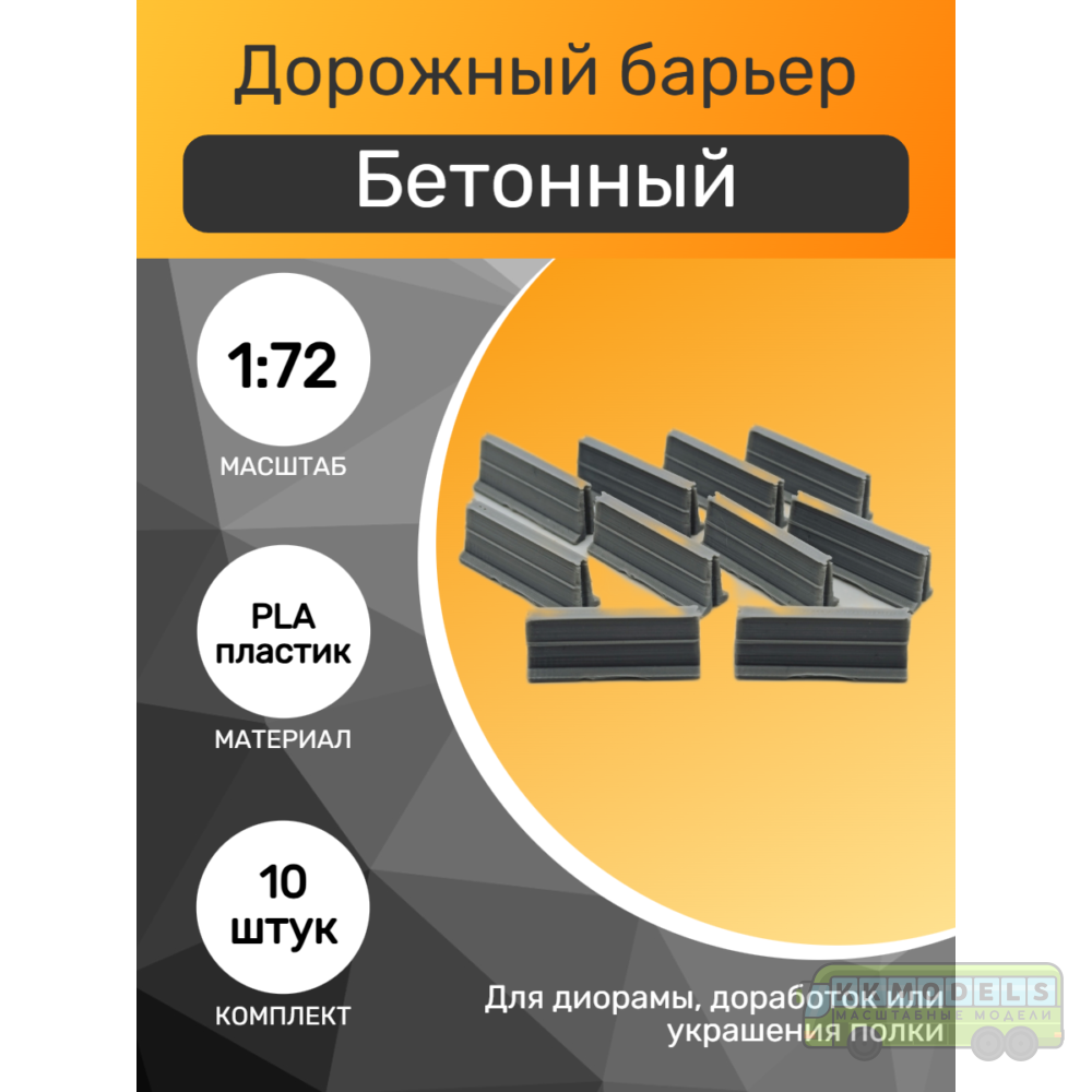 Технические характеристики 1:72 Дорожный барьер бетонный, набор 10шт