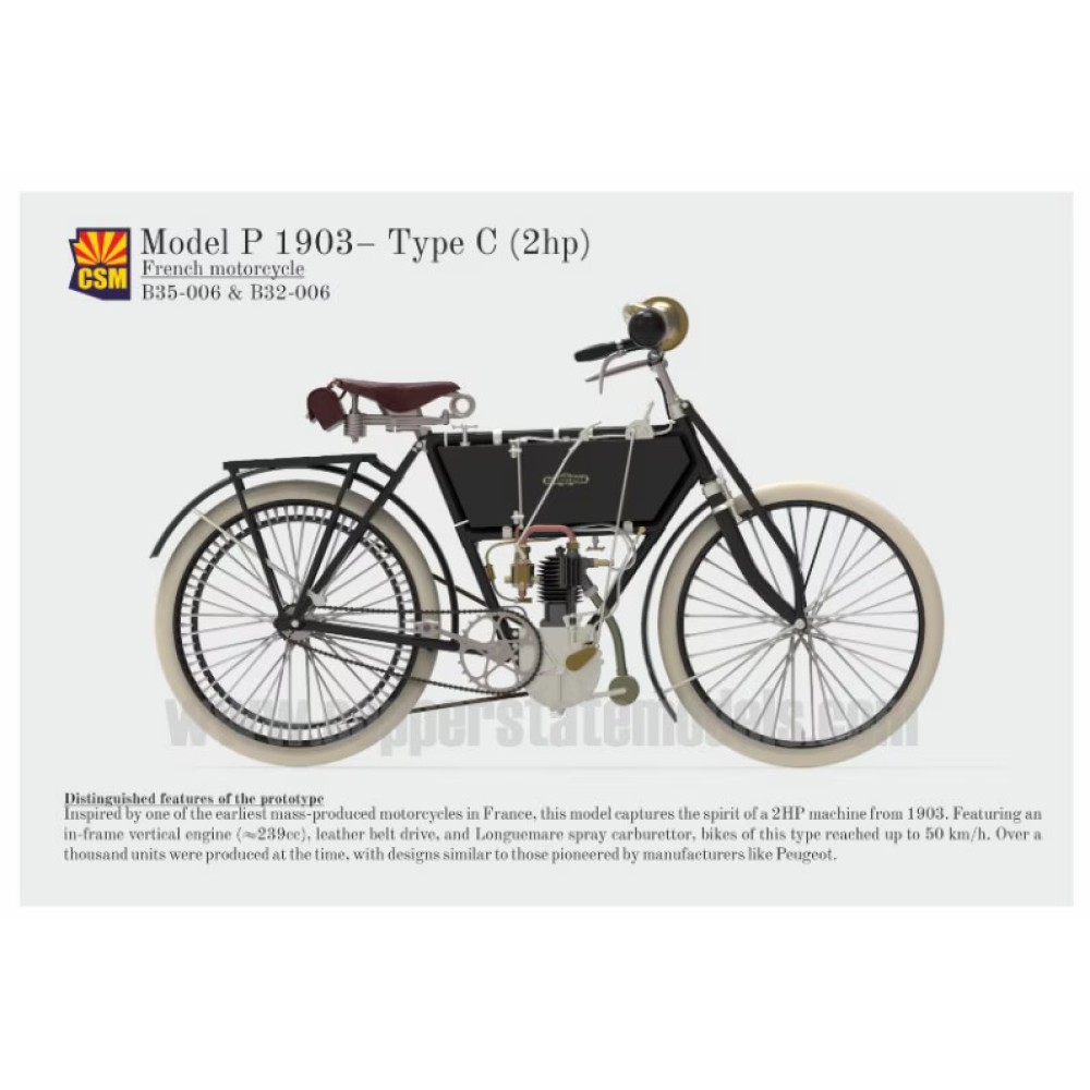 Технические характеристики 1:35 Французский мотоцикл модель P – Type C 1903 (2 л.с.)