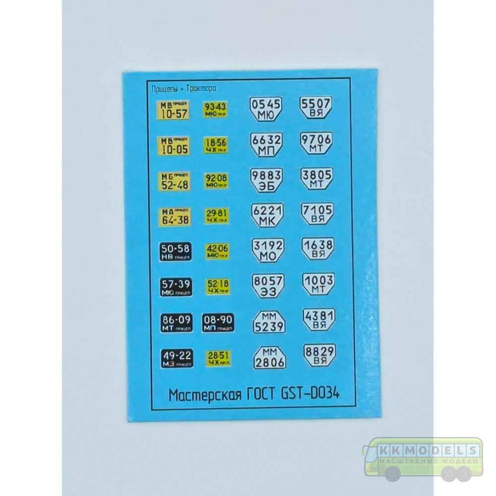 Технические характеристики 1:43 Набор декалей Номерные знаки для Прицепов и тракторов Вариант 2