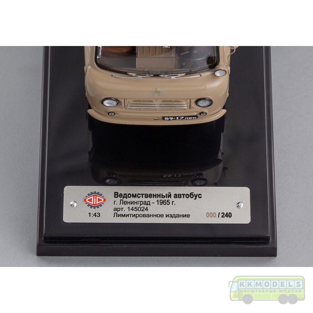 1:43 Масштабная модель Советский автомобиль тип 450A, Ведомственный автобус, г. Ленинград, 1965 г.