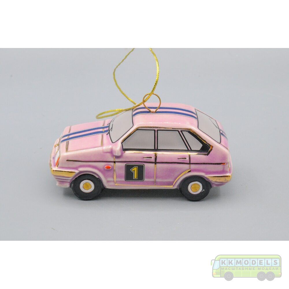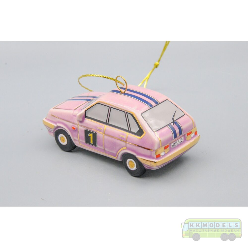 Ёлочная игрушка "Девятка" спортивная сиреневая с синими полосами