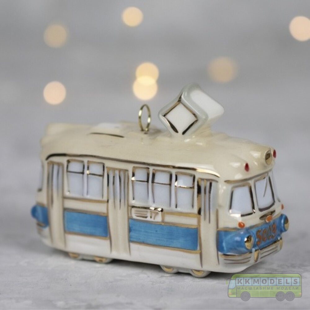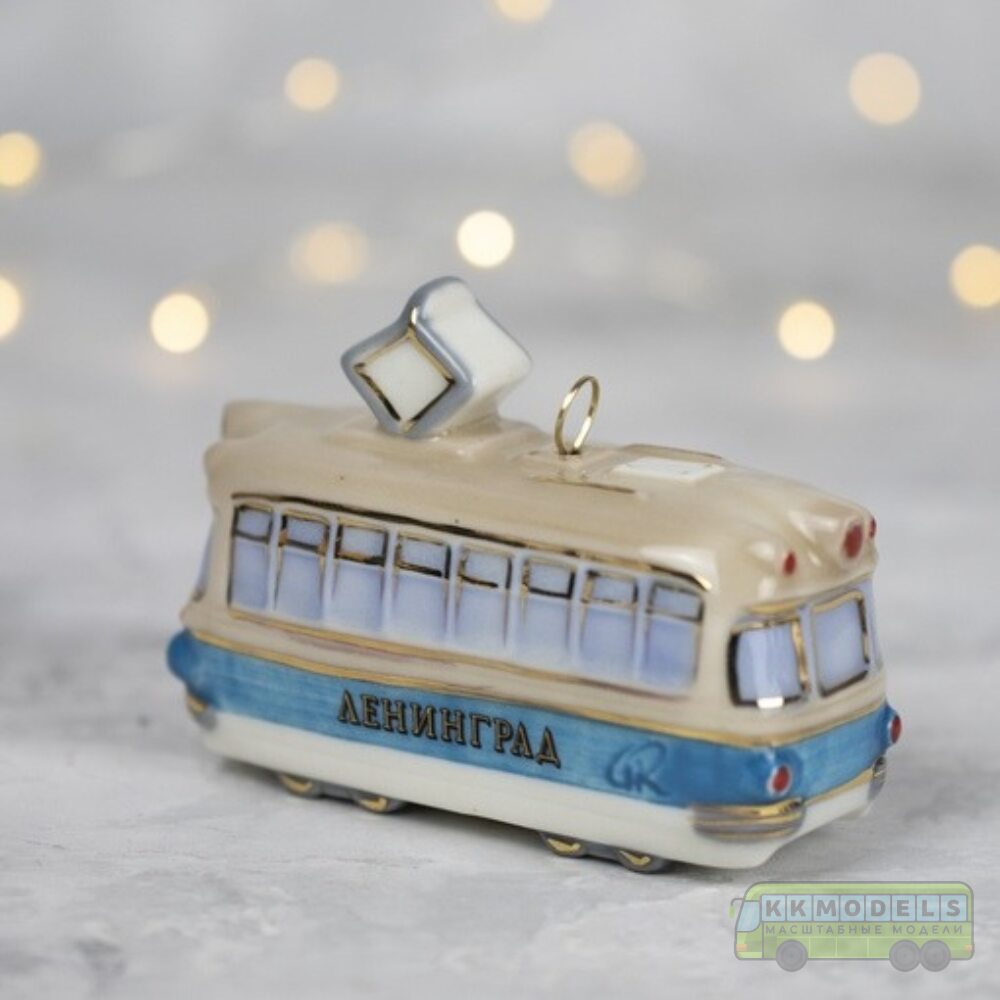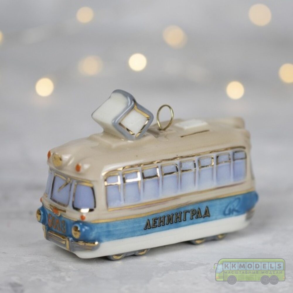 Елочная игрушка "Трамвай - Ленинград" с голубой полосой