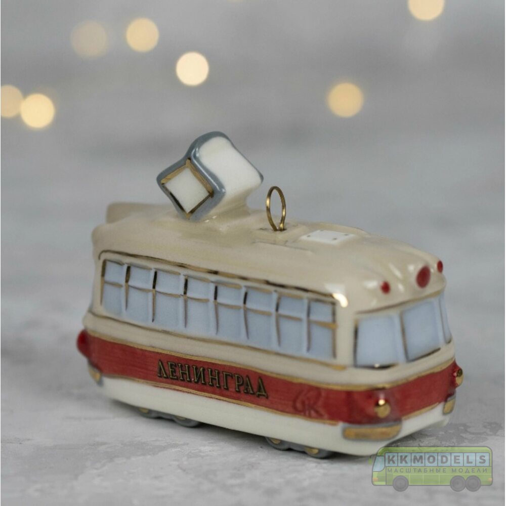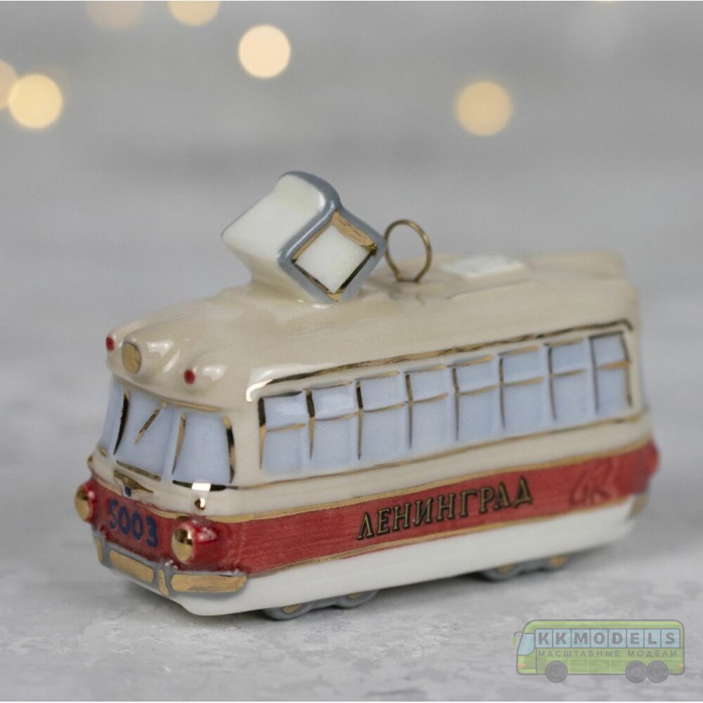 Елочная игрушка "Трамвай - Ленинград" с красной полосой
