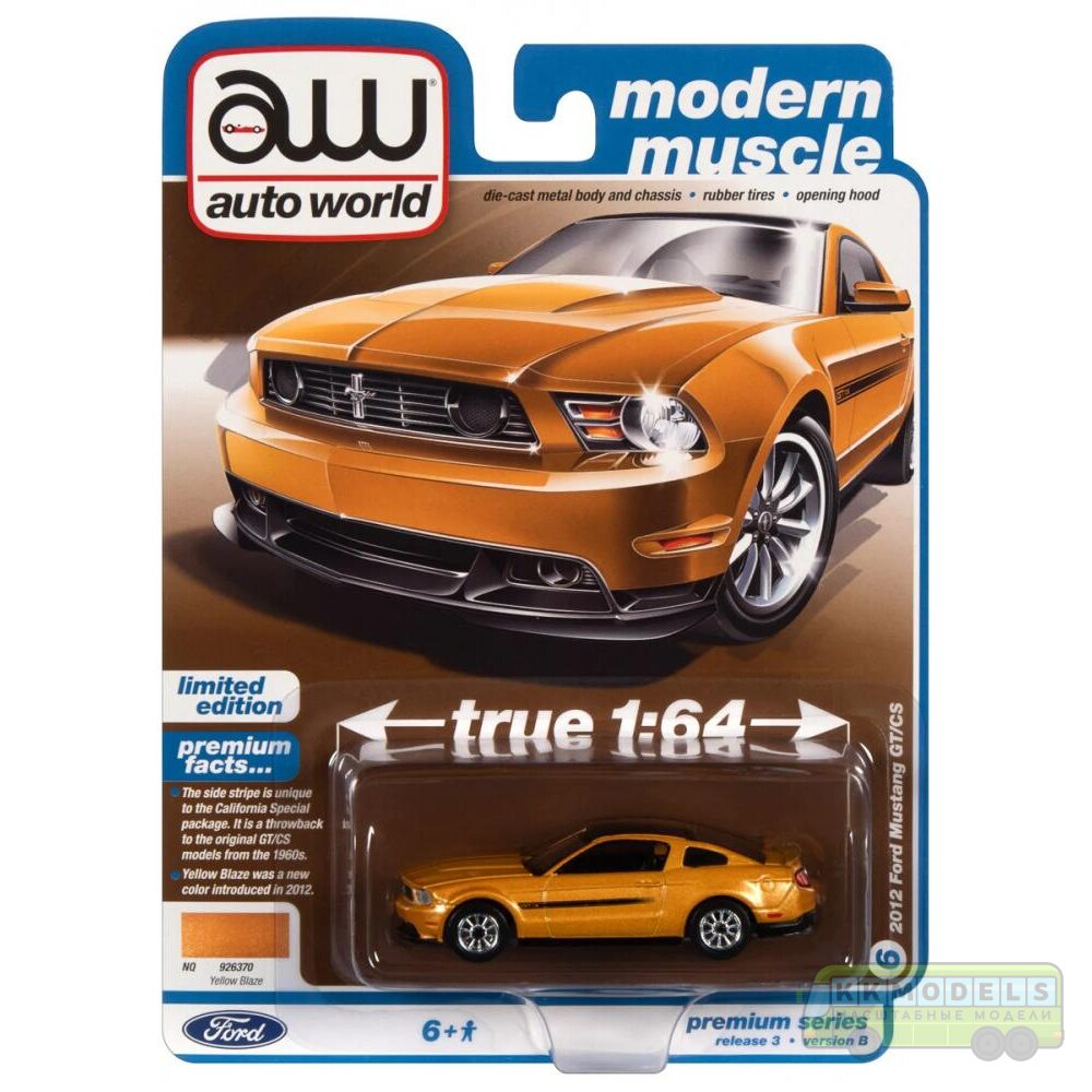 Технические характеристики 1:64 Масштабная модель Auto World Premium 2012 Ford Mustang Yellow