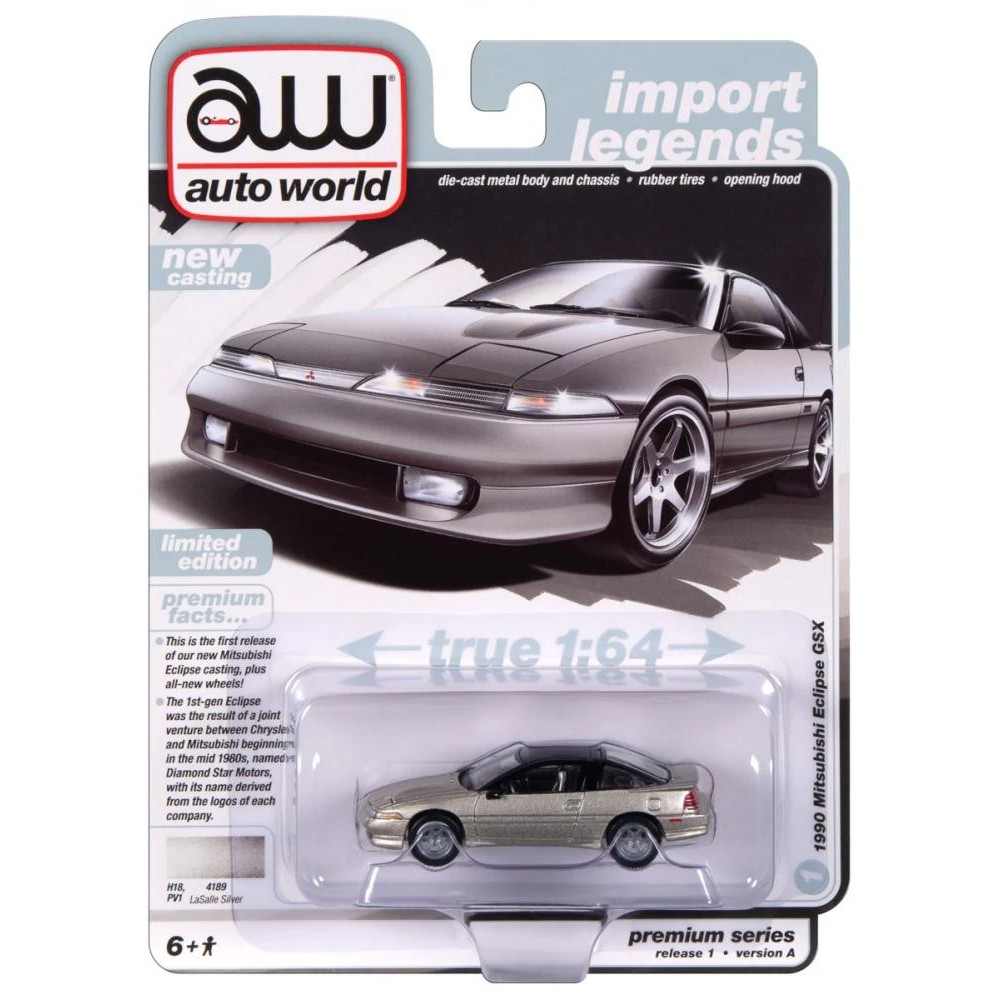 1:64 Масштабная модель Auto World 1990 Mitsubishi Eclipse GSX LaSalle Silver Metallic