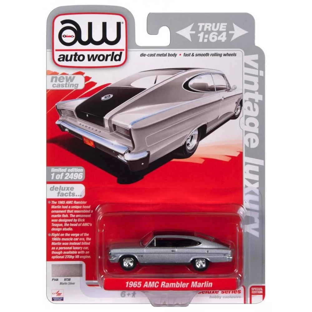 1:64 Масштабная модель Auto World 1965 AMC Rambler Marlin Silver Metallic