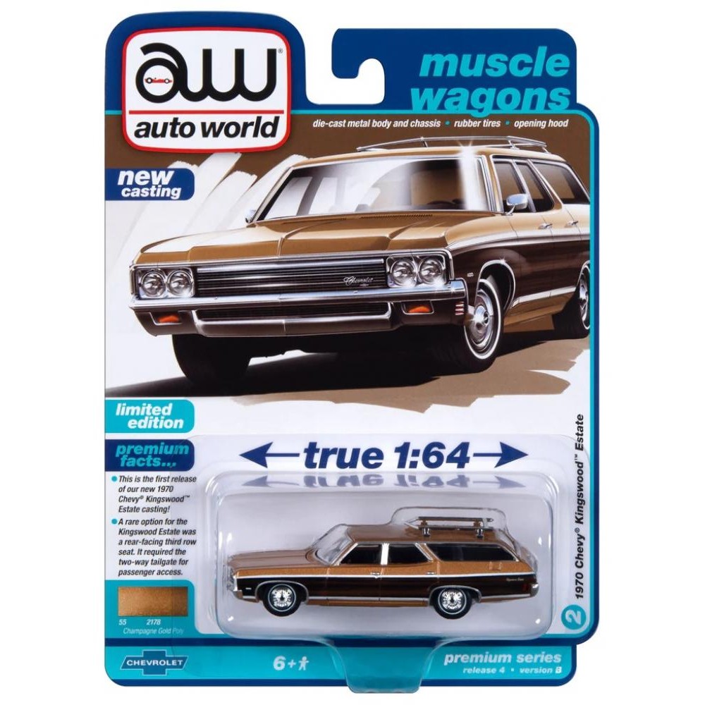 Технические характеристики 1:64 Масштабная модель Auto World 1970 Chevrolet Kingswood Estate Wagon Champagne Gold Metallic