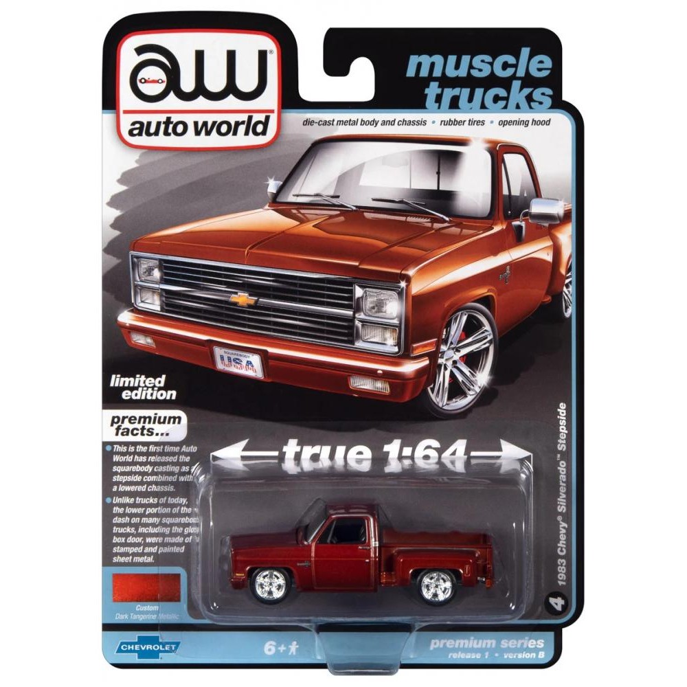1:64 Масштабная модель Auto World 1983 Chevrolet Silverado Stepside Pickup Truck Dark Tangerine