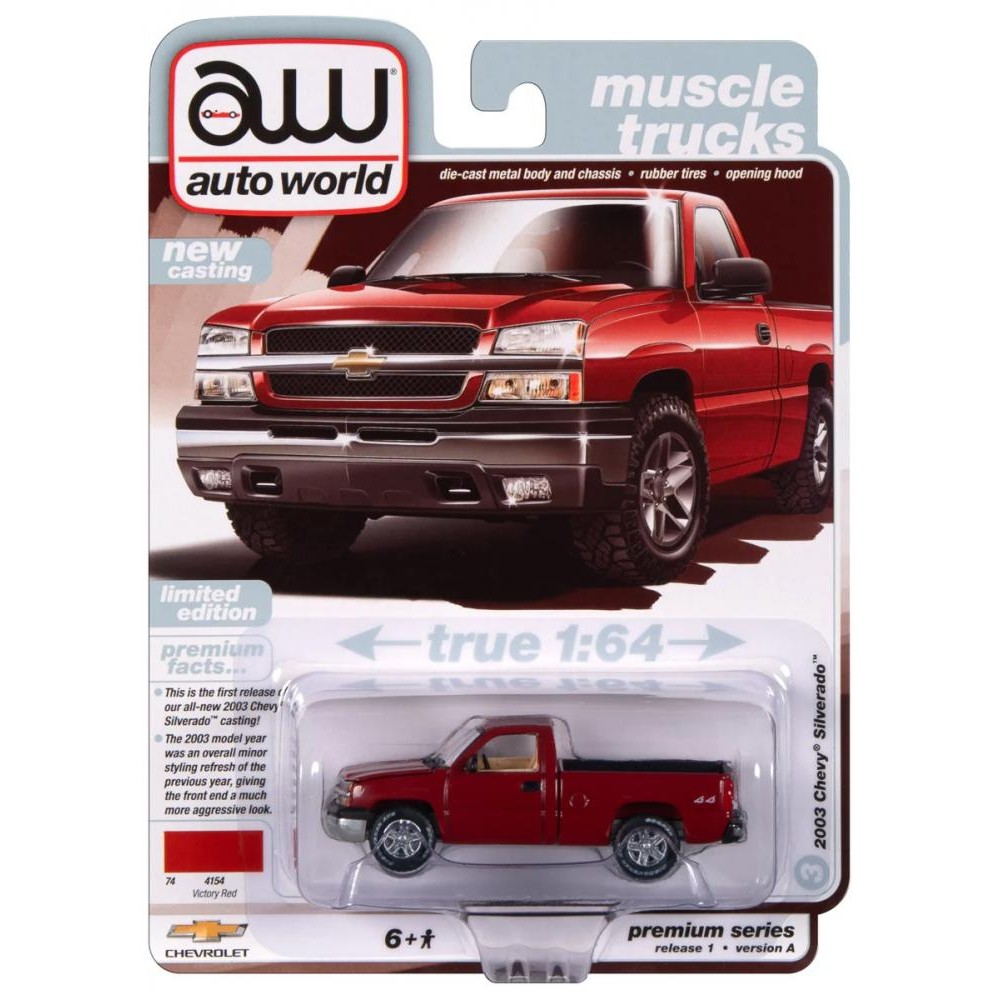 1:64 Масштабная модель Auto World 2003 Chevrolet Silverado Pickup Truck Victory Red