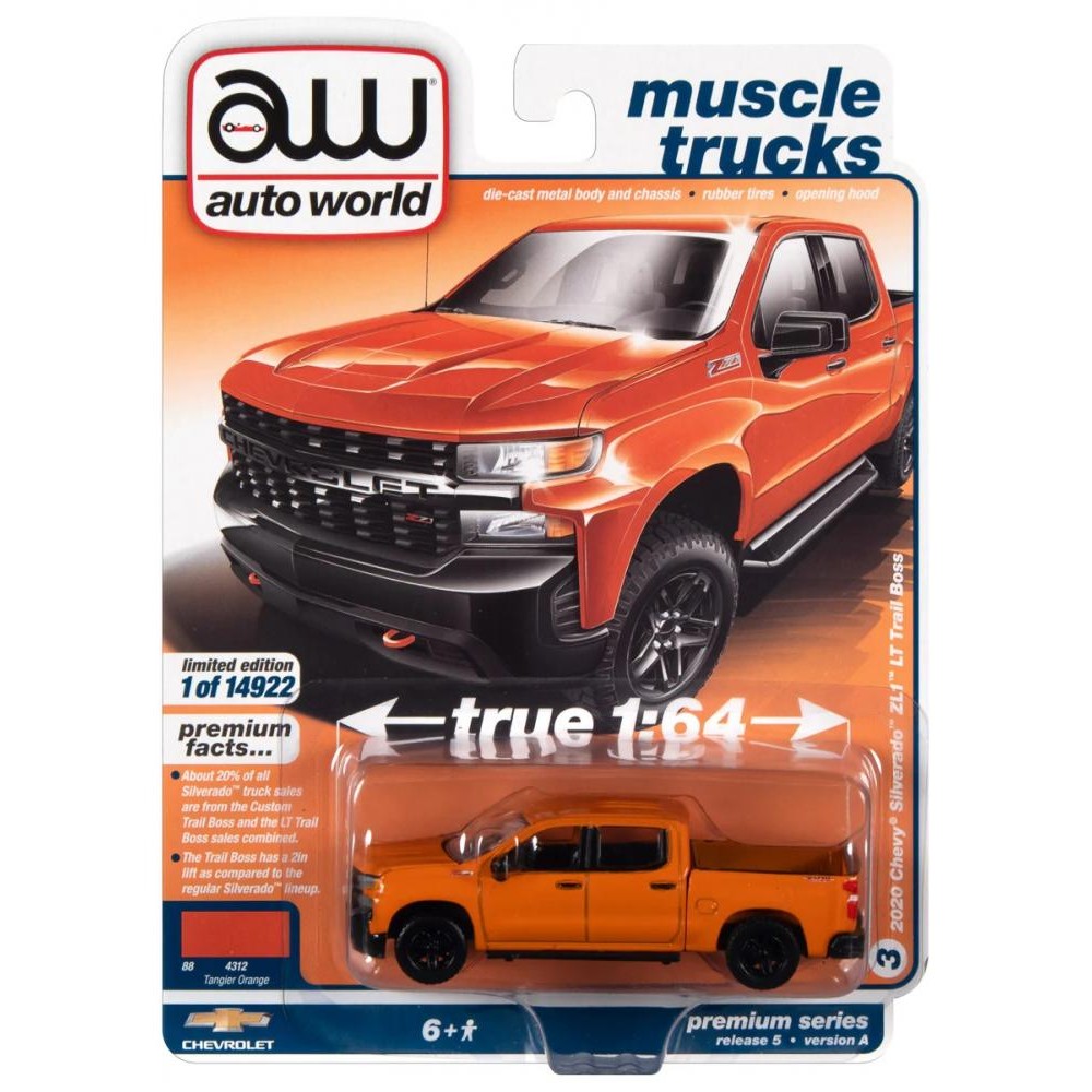 Технические характеристики 1:64 Масштабная модель CHEVY 2020 SILVERADO Z71 LT TRAIL BOSS ORANGE