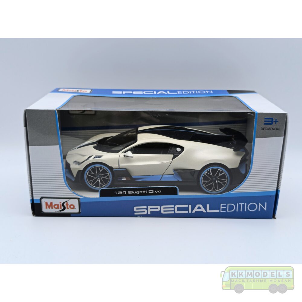 Технические характеристики 1:24 Масштабная модель BUGATTI DIVO Special Edition белый с голубым