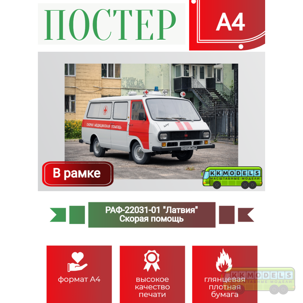 - Постер А4 в рамке РАФ-22031-01 "Латвия" Скорая помощь