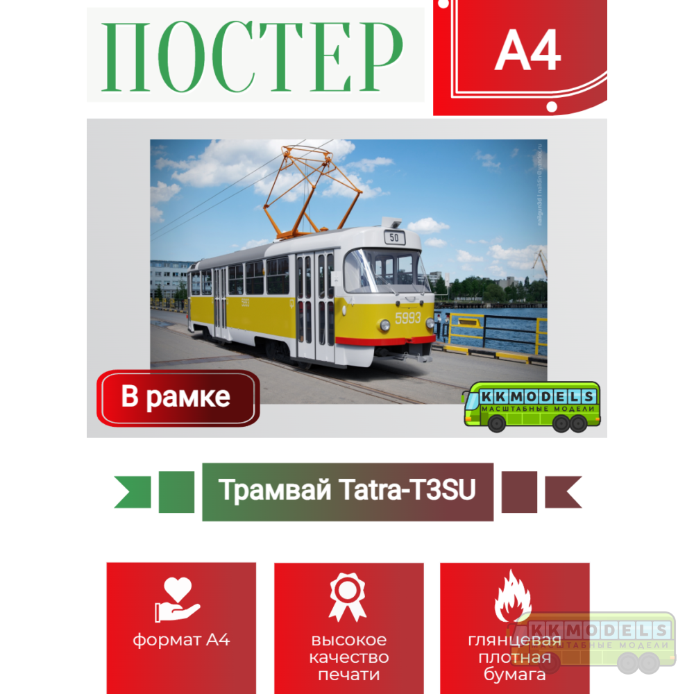 - Постер А4 в рамке Трамвай Tatra-T3SU