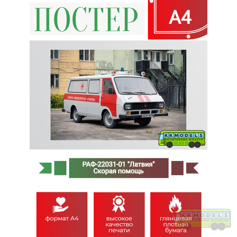 - Постер А4 РАФ-22031-01 "Латвия" Скорая помощь