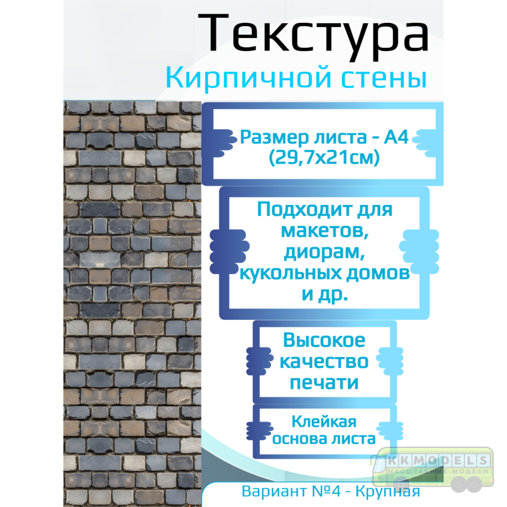 Самоклеющаяся текстура кирпичной стены №4 (крупная), для макетов, лист А4