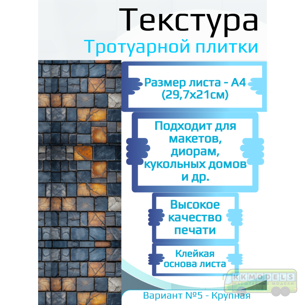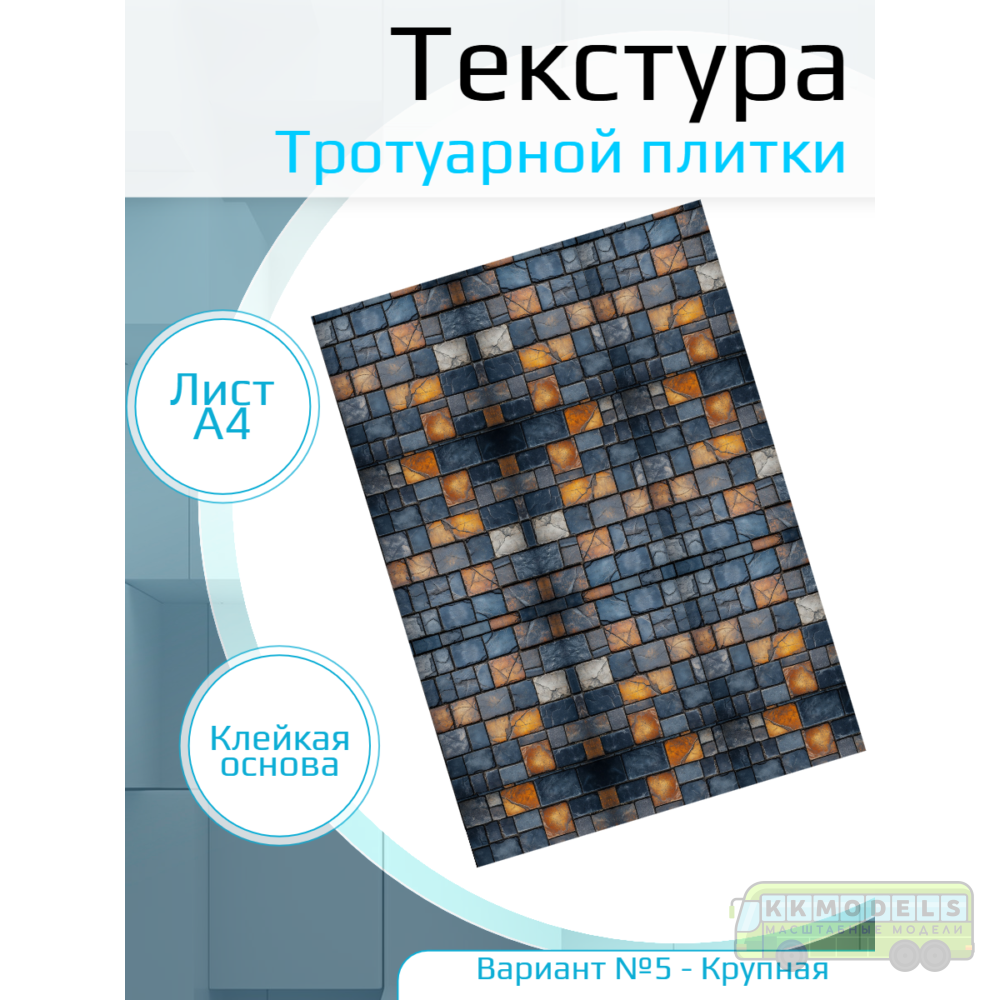 Технические характеристики Самоклеющаяся текстура тротуарной плитки №5 (крупная), для макетов, лист А4