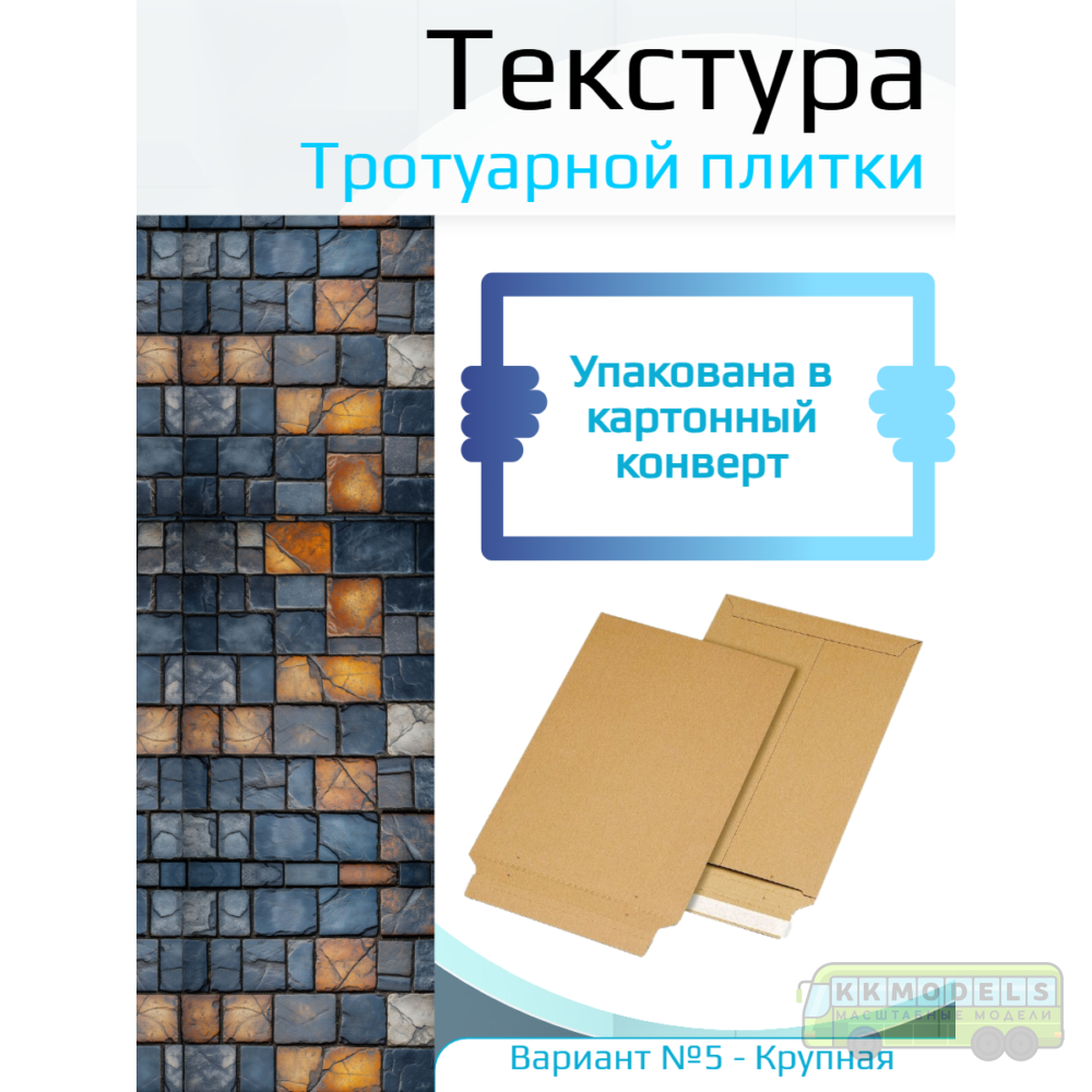 Самоклеющаяся текстура тротуарной плитки №5 (крупная), для макетов, лист А4